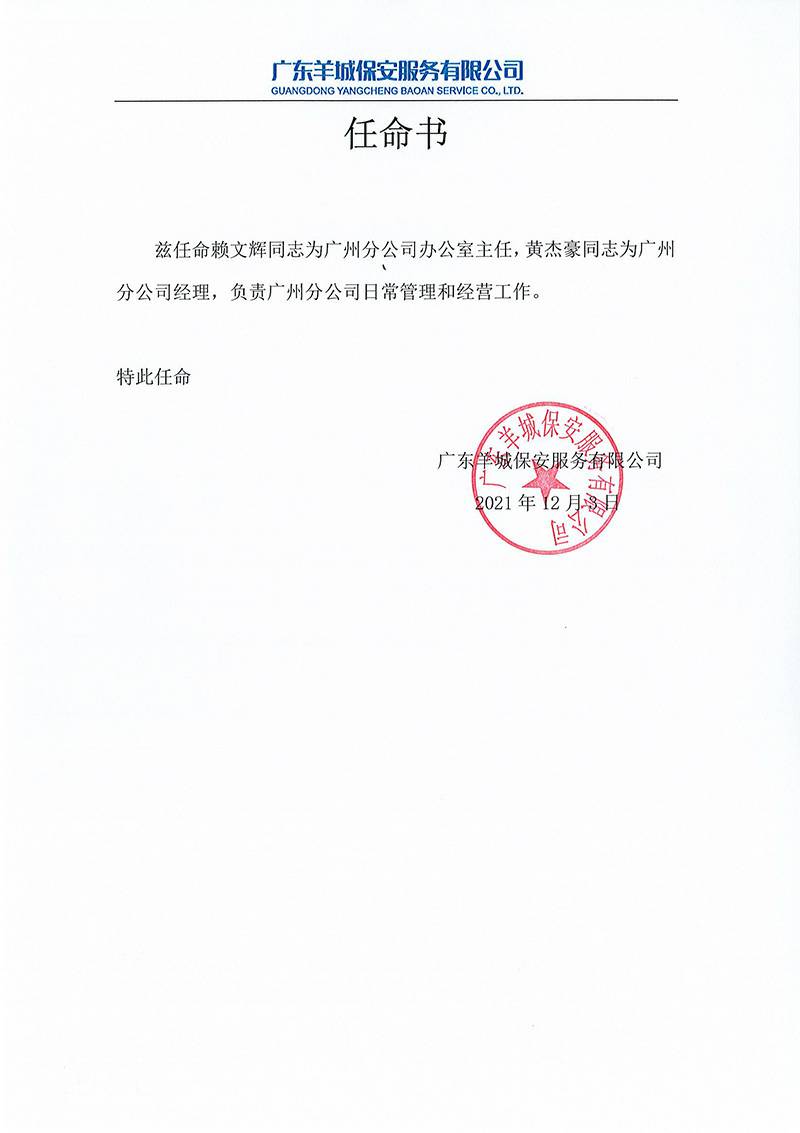 龙8在线登录官网-龙8(中国)关于黄杰豪与赖文辉的任命书正式通知
